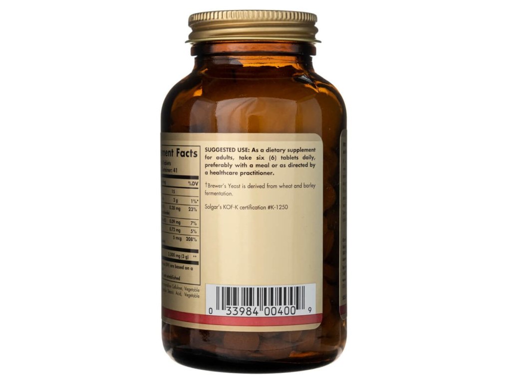 Pivovarské kvasnice patří mezi nejbohatší přírodní zdroje vitamínů skupiny B. Tento doplněk stravy od Solgar obsahuje pivovarské kvasnice získané fermentací pšenice a ječmene, doplněné o vitamin B12 pro podporu energetického metabolismu, vitality a správné činnosti nervového systému.