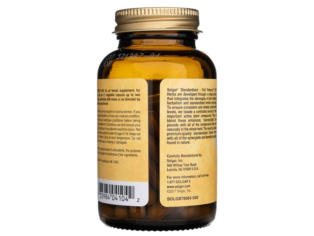 Solgar® Standardized Full Potency™ (SFP) Ashwagandha je vysoce kvalitní bylinný doplněk stravy vyvinutý unikátním procesem, který spojuje tradiční bylinkářství s moderní technologií standardizovaných extraktů. Tento inovativní přístup zaručuje konzistentní obsah aktivních látek (withanolidů) a zároveň zachovává všechny synergické látky přirozeně přítomné v celé bylině 🌱.