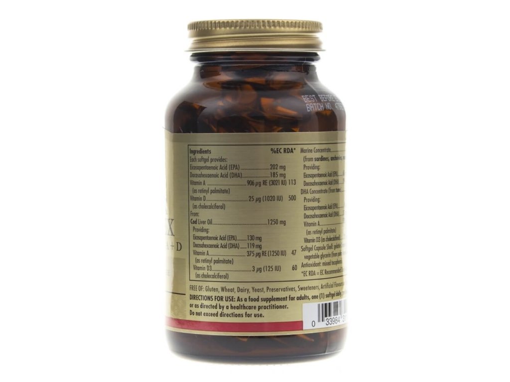 Solgar® Super Cod Liver Oil Complex je vysoce kvalitní doplněk stravy obsahující olej z tresčích jater obohacený o EPA, DHA, vitamin A a vitamin D3. Tento komplex podporuje zdraví srdce, mozku, zraku a imunitního systému. 💙