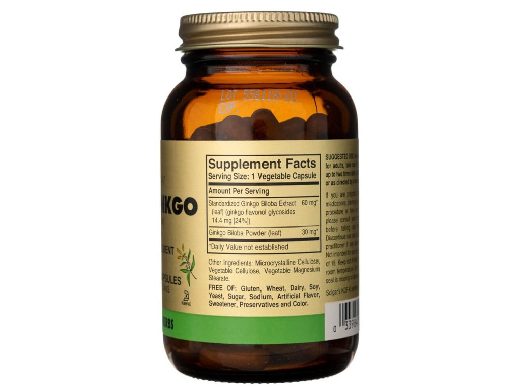 Solgar Ginkgo Biloba SFP obsahuje standardizovaný extrakt z listů ginkga biloby, doplněný o celý rostlinný prášek pro zachování přirozeného účinku. Ginkgo biloba je známá svým přínosem pro paměť, soustředění a správnou funkci oběhového systému 🧠💚.