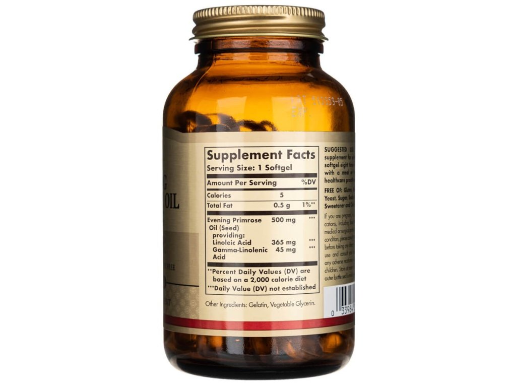 Solgar® Evening Primrose Oil 500 mg je prémiový olej lisovaný za studena ze semen pupalky dvouleté (Oenothera biennis). Tento přírodní doplněk stravy je bohatým zdrojem esenciálních nenasycených mastných kyselin – zejména kyseliny linolové (LA) a kyseliny gama-linolenové (GLA), které jsou důležité pro zdraví pokožky, hormonální rovnováhu a celkovou vitalitu. 💛