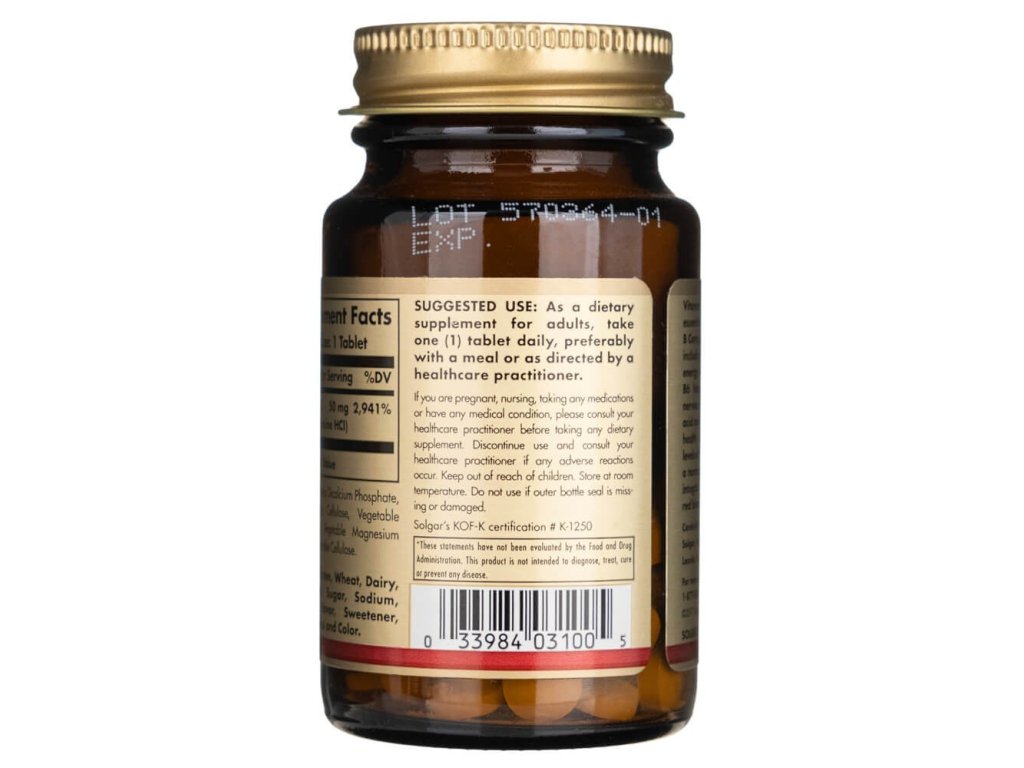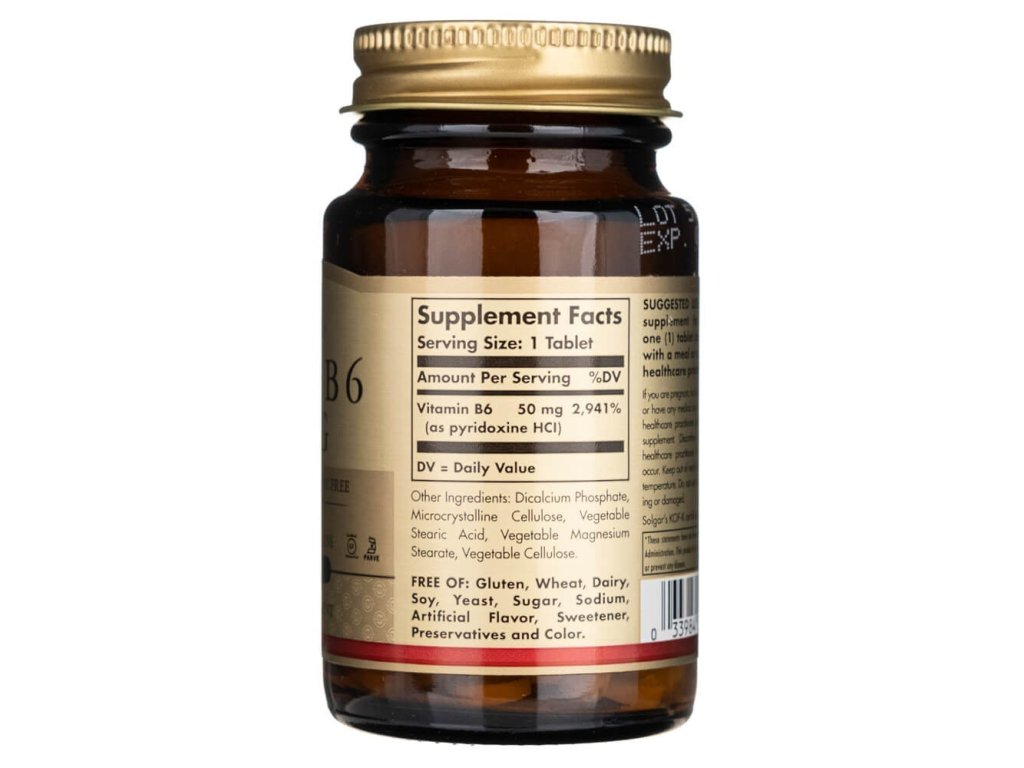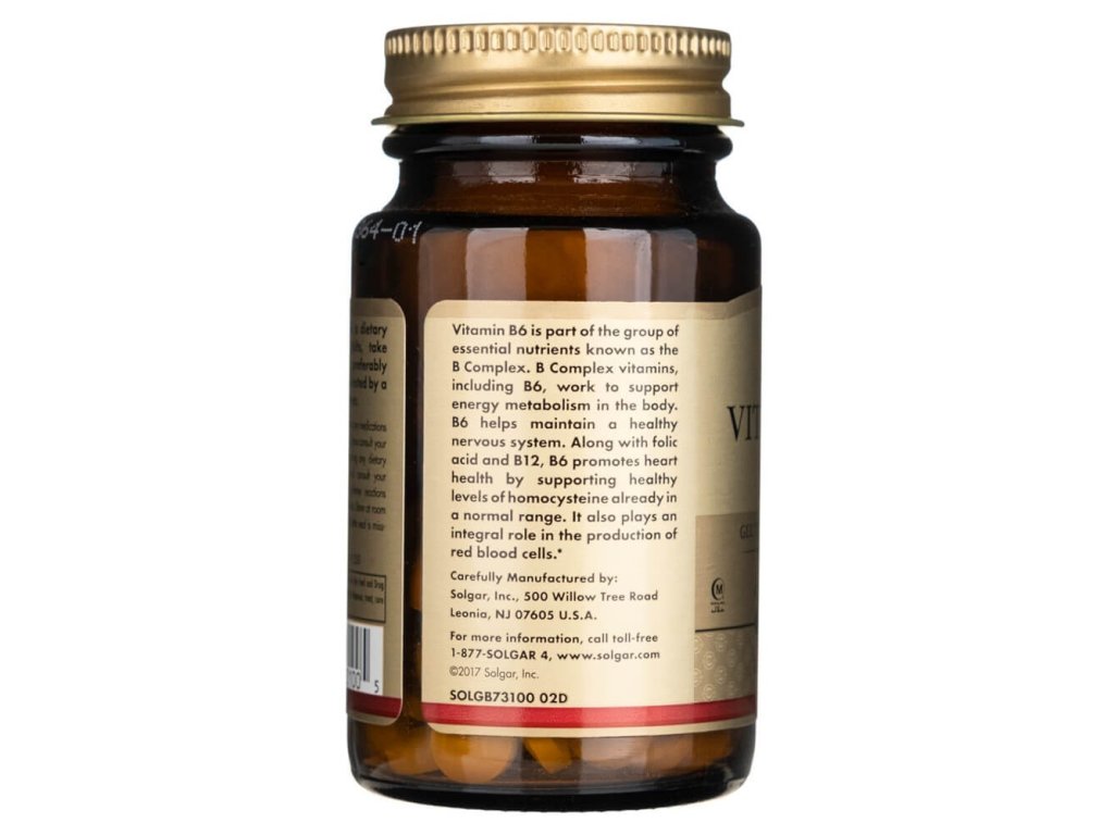Solgar® Vitamin B6 50 mg je kvalitní doplněk stravy z řady vitaminů B-komplexu, který hraje klíčovou roli v energetickém metabolismu, funkci nervového systému a tvorbě červených krvinek. 💪