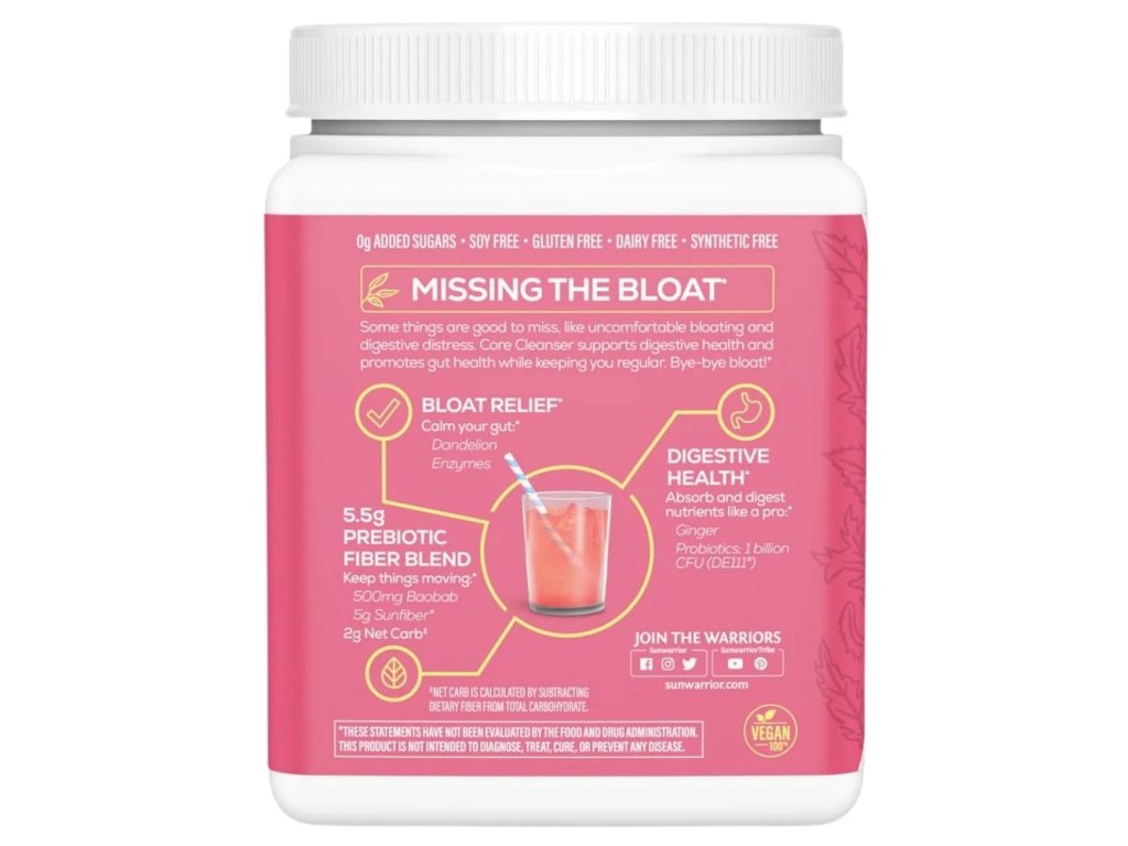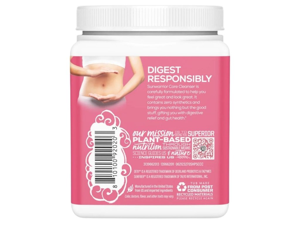 🍓 Sunwarrior Core Cleanser – Strawberry je přírodní trávicí směs pro všechny, kteří chtějí zlepšit zažívání, zmírnit nadýmání a podpořit zdraví střev. Kombinuje prebiotickou vlákninu, enzymy, pampelišku, zázvor a klinicky ověřené probiotikum DE111®. Výsledkem je efektivní, jemná a velmi chutná podpora trávení.