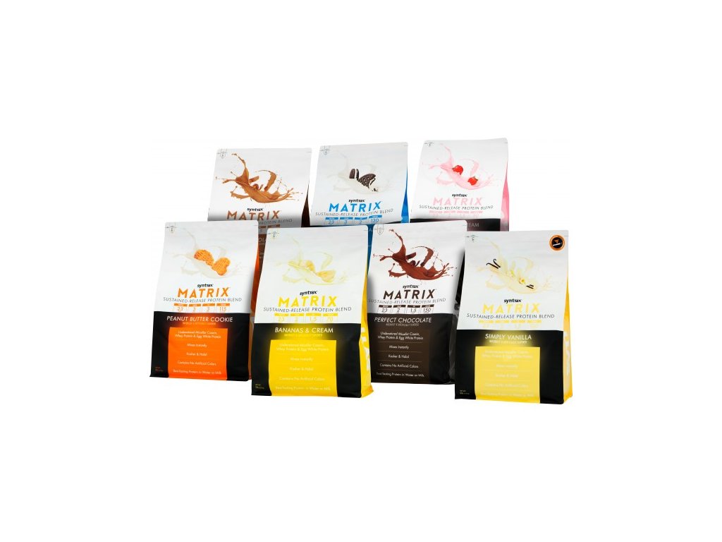 Matrix je oblíbeným instantním proteinovým suplementem s velmi dobrou chutí a skvělou rozpustností, je vícesložkový, nabízí postupné uvolňování pro zásobení Vašich svalů živinami. Obsahuje nejpomaleji trávený nedenaturovaný micelární kasein, nejrychlejší syrovátkový protein a také protein vaječného bílku. Bílkoviny podporují růst a ochranu svalové hmoty. Matrix® používá pouze ty nejkvalitnější ingredience, jako je ultrafiltrovaný syrovátkový protein, ultrafiltrovaný micelární kasein, nativní protein z vaječných bílků a glutaminové peptidy.