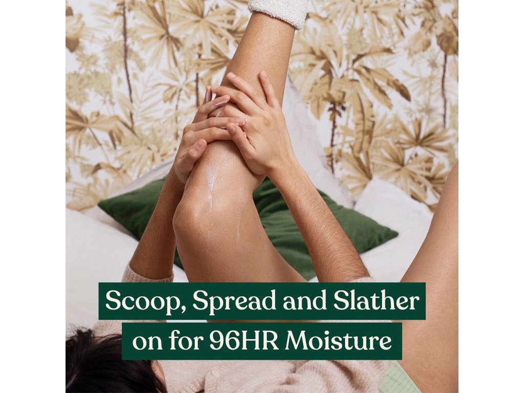 Naše veganské tělové máslo zjemňuje a hydratuje suchou pokožku po dobu nejméně 96 hodin a zanechává ji lehce rozzářenou.