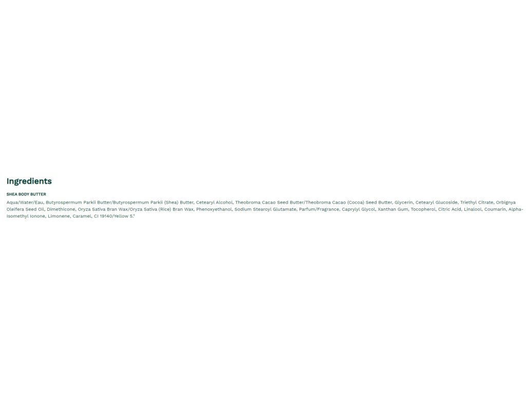 Telové máslo je obohacen o 97 % přírodních složek včetně fairtradového ručně vyráběného bambuckého másla z Ghany a fairtradového oleje babassu z Brazílie.