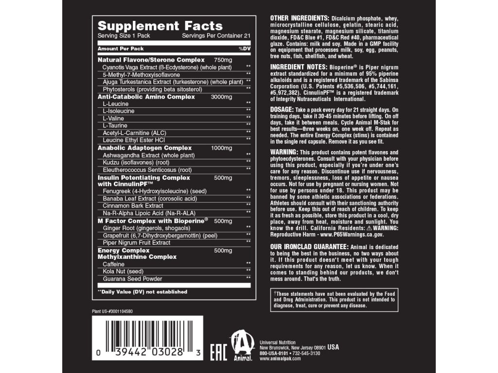 Co je to anabolikum? Budování svalů a procesy, které nás vedou k novému růstu... Syntéza bílkovin. Zadržování dusíku. Rozdělení živin. Co je Animal M-Stak? Přírodní, nehormonální doplněk určený pro ty nejtvrdohlavější ze všech "hardgainerů". Od zeleného začátečníka až po tvrdého veterináře, všichni jsme si tím prošli - smyk až na doraz, naše pokroky nečinně stojí na náhorní plošině. Nemůžete přibrat další kilo, tréninky jsou vyčerpané, zdvihy jsou statické. Jedná se o syndrom hardgainerů a všichni, od nejštíhlejších ektomorfů až po nejsvalnatější endomorfy, jsme si tím prošli. V zoufalé snaze nastartovat nový růst vyzkoušíme téměř cokoli. Pro ty z nás, kteří se tolik věnují hře se železem, tyto chvíle frustrace skončily v podobě Animal M-Stak