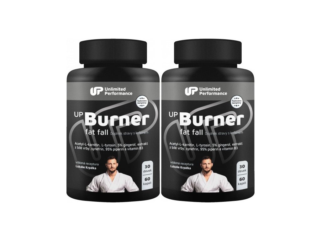 Nekompromisní spalovač tuků. UP Burner Fat Fall je doplněk stravy s acetyl-L-karnitinem, L-tyrosinem, kofeinem, extraktem ze zázvoru a z bílé vrby, vitamínem B3, extraktem z pomerančovníku hořkého a černého pepře. S Vaším tréninkem není lepší kombinace na zbavení se přebytečných tukových zásob a snížení hmotnosti. UP Burner Fat Fall je a má být součástí finální přípravy nebo nejtěžších tréninků v jakémkoliv sportu. Na vývoji produktu se podílel olympijský vítěz Lukáš Krpálek, který ho sám ve své sportovní přípravě používá.