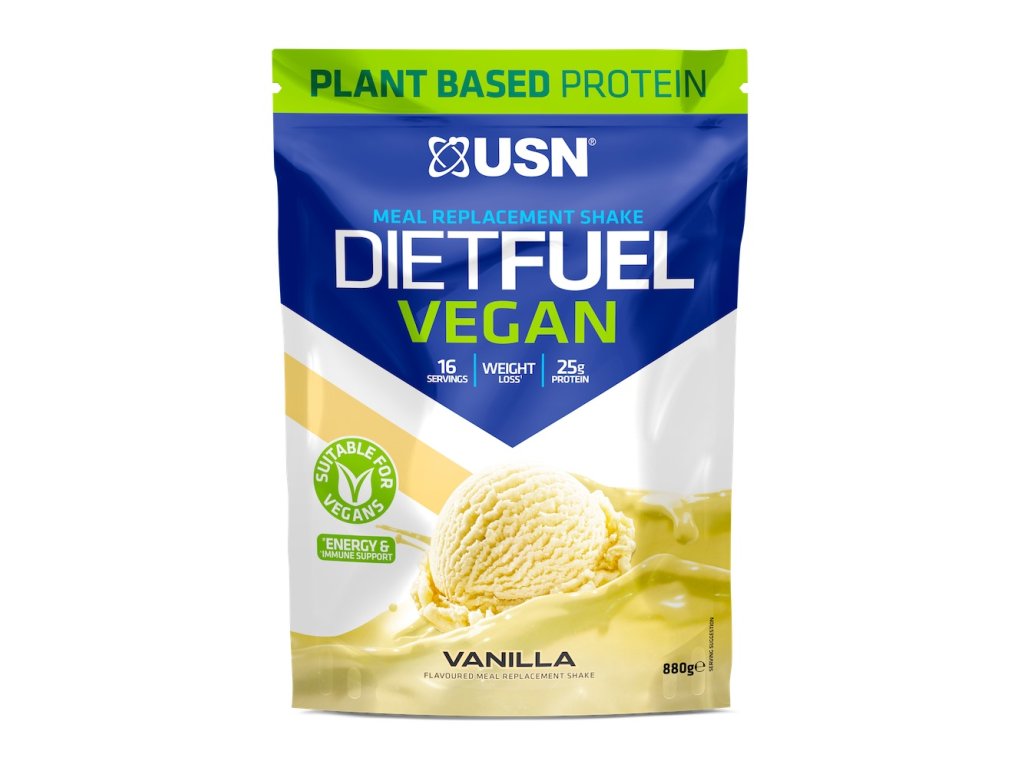 USN Diet Fuel Vegan je směs pro přípravu nápoje nahrazující hlavní jídlo. USN Diet Fuel Vegan obsahuje širokou škálu vitaminů a minerálních látek, proto podporuje funkce různých pochodů v těle např. obsah vitaminu B12 a železa podporuje normální energetický metabolismus a normální funkci imunitního systému. Díky svému složení je USN Diet Fuel Vegan vhodný i pro vegany. Mějte svou hmotnost pod kontrolou.Bez obsahu laktozy a lepku.