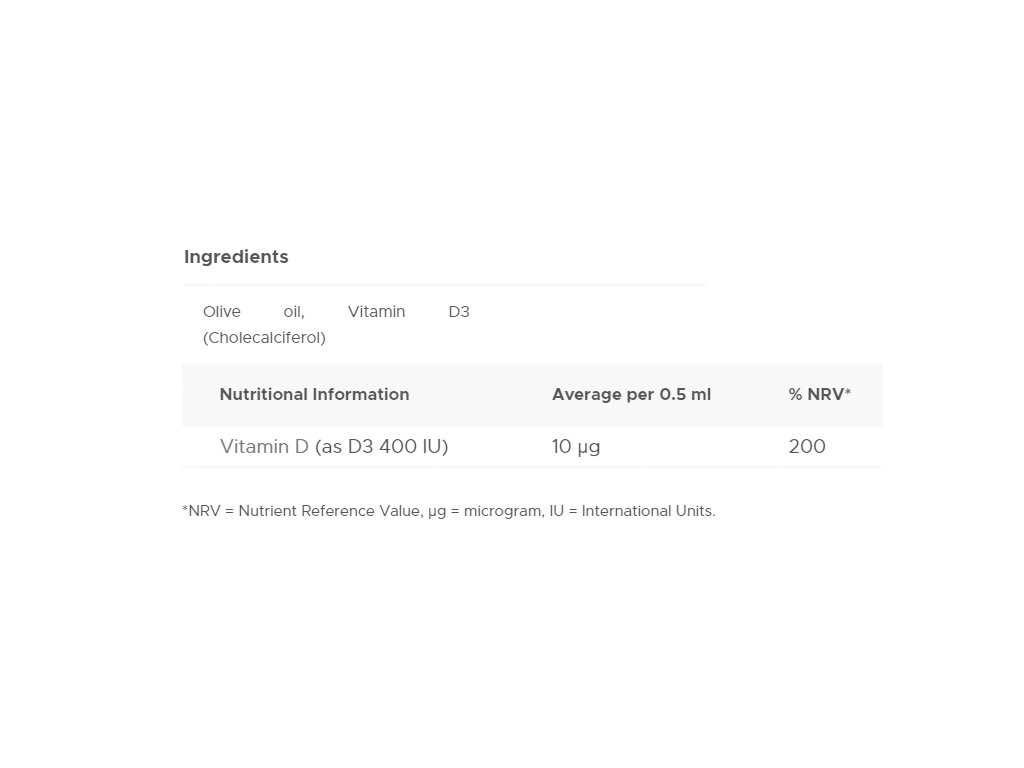 Dítě se rodí s 300 kostmi a během prvních let života vašeho dítěte kosti rychle rostou. Wellbaby Vit D Drops dodává vitamin D (ve formě D3, což je tělu nejbližší forma vitaminu D), který je potřebný pro normální růst a vývoj kostí u dětí. Přispívá také k normální funkci jejich imunitního systému.