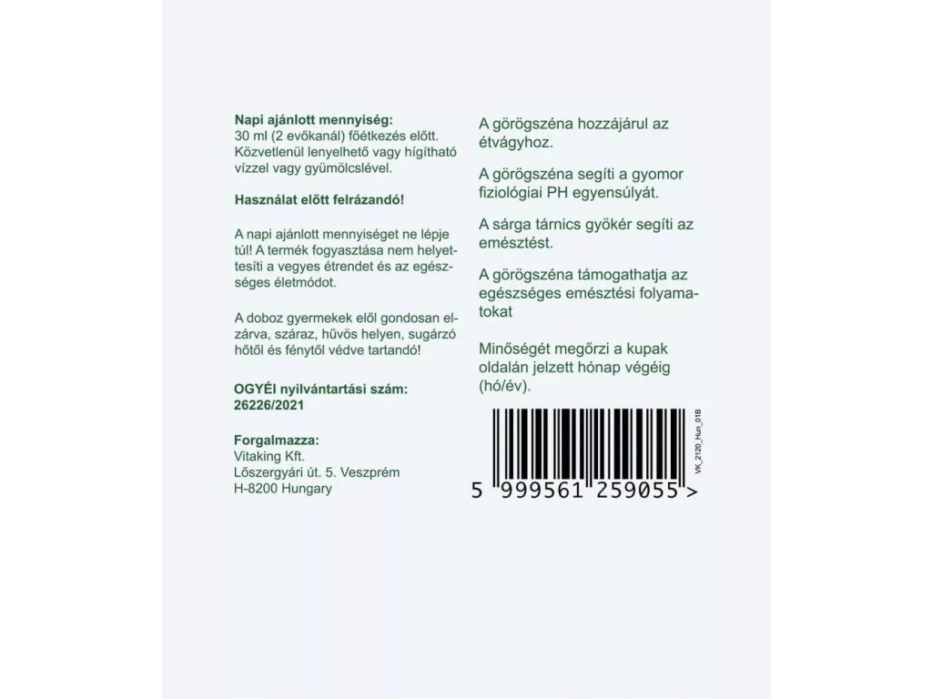 Velikost dávky: | 2 polévkové lžíce (30 ml) |