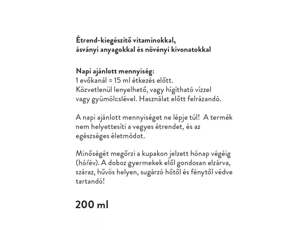 1 polévková lžíce = 15 ml před jídlem. Lze jej polykat přímo nebo ředit vodou či ovocnou šťávou. Před použitím protřepejte.Skladování