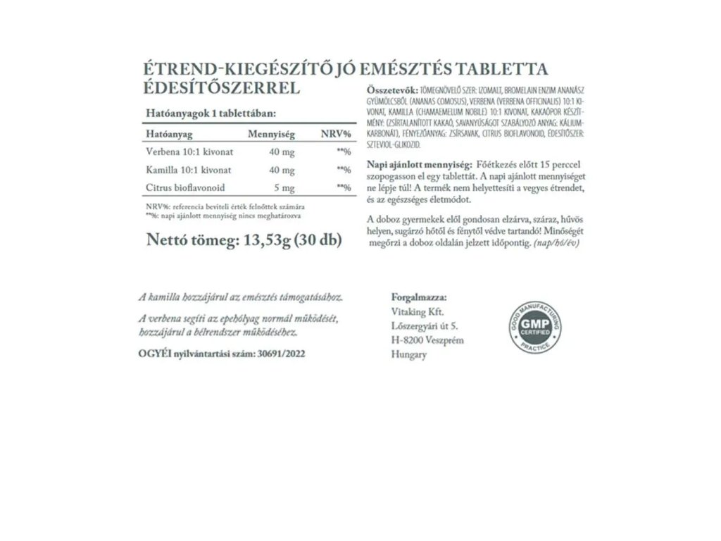Vitaking Jó Emésztés - Herbal Complex For Digestive Support 30 tablet