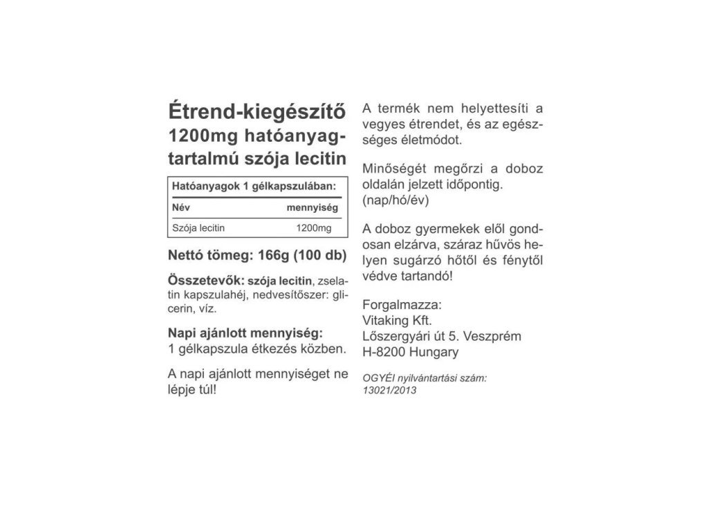 Každá gelová tobolka obsahuje 1200 mg sójového lecitinu.Podrobněji viz kapitola 2