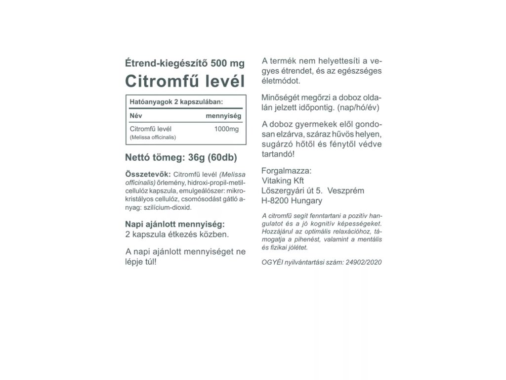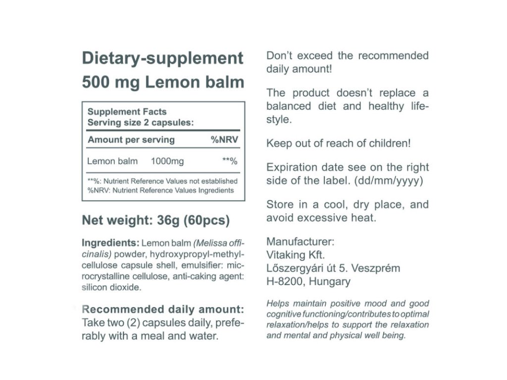 Vitaking Lemon Balm 500 mg 60 kapslí