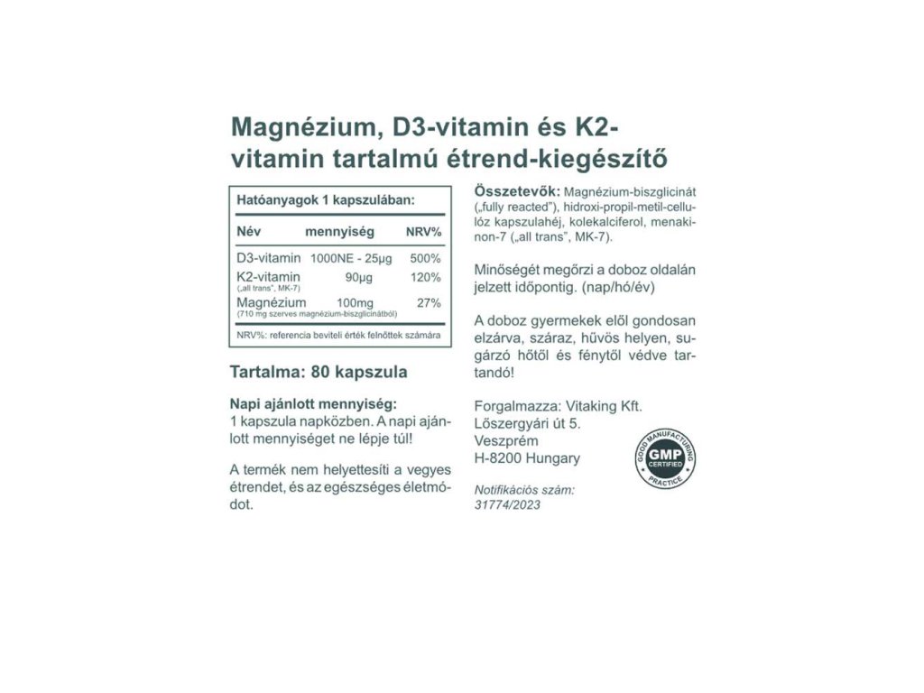 Vitaking MagneTrio D3+K2+ Magnsium bisglycinate 80 kapslí