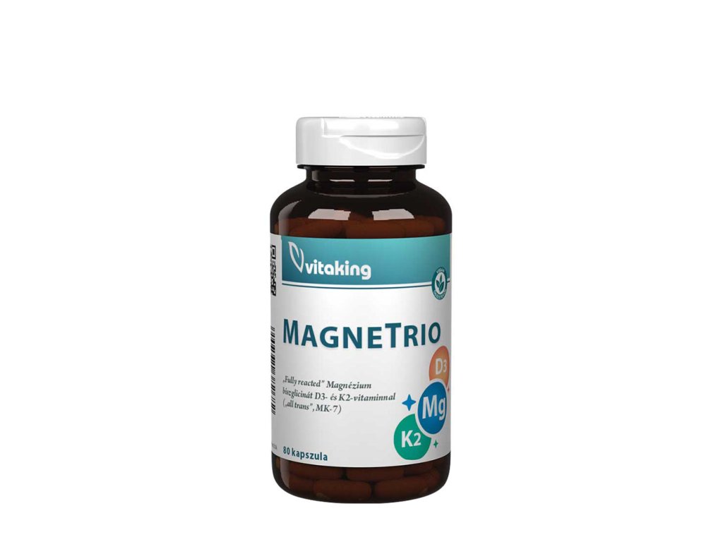 Vitaking MagneTrio obsahuje 3 základní živiny v jedné kapsli ve vysoké kvalitě a množství. Co výrobek obsahuje? Hořčík, vitamin D3 a menachinon-7 (MK7), což je nejlépe dostupná forma vitaminu K. Jedna kapsle obsahuje 90 μg vitaminu K2 (MK7), 1000 Ne vitaminu D a 100 mg bisglycinátu hořečnatého. Výhodou komplexního přípravku je, že není nutné jej kupovat samostatně, ale lze jej složit tak, aby tělu poskytl dostatečné množství těchto základních živin
