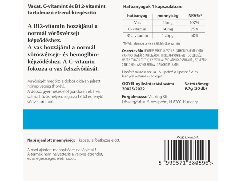 Doplněk stravy VitaFer v mikrokapslích je vynikající pro zajištění denní potřeby železa. Kromě železa obsahuje také vitaminy B12 a C. Iron contributes to maintaining normal mental functioning, normal red blood cell and hemoglobin formation, and participates in normal energy-producing metabolic processes.