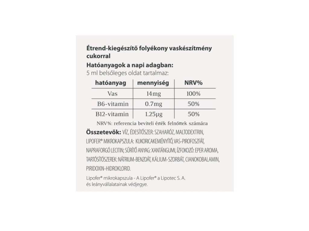 doplněk stravy VitaFer® s mikrokapslemi železa je ideální pro pokrytí denní potřeby železa. Kromě železa obsahuje také vitaminy B12 a B6. Železo přispívá k udržení normálních kognitivních funkcí, normální tvorbě červených krvinek a hemoglobinu a podílí se na normálních metabolických procesech, při nichž se získává energie.- Příjemná chuť