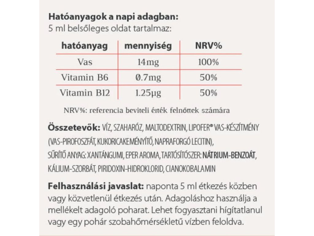 vitaFer-L se výborně hodí k pokrytí denní potřeby železa nejen u dětí, ale i u dospělých. Kromě denní dávky železa obsahuje přípravek také vitamin B12 v množství, které pokrývá 50 % doporučené denní dávky a podporuje lepší vstřebávání železa. Obsah vitaminu B6 v sirupu rovněž přispívá k normální tvorbě červených krvinek.Železo