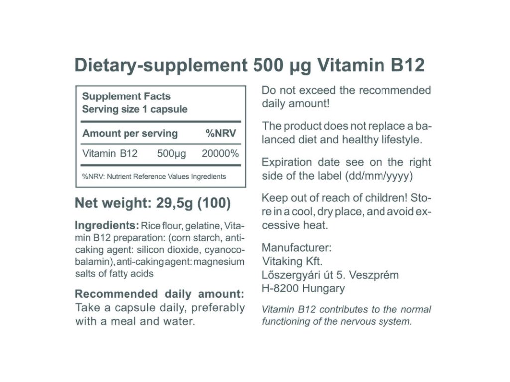 Vitaking Vitamin B-12 500 mcg 100 kapslí