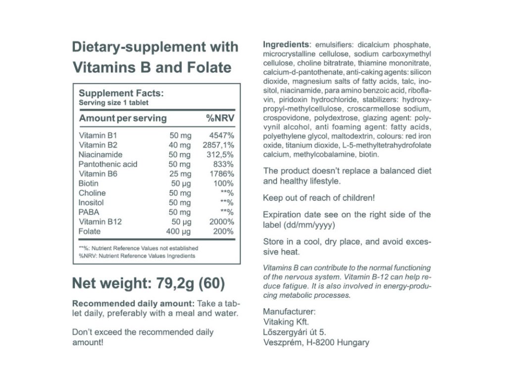 - Vitamin B2, B3, B5, B6 and B12 contributes to the reduction of tiredness and fatigue