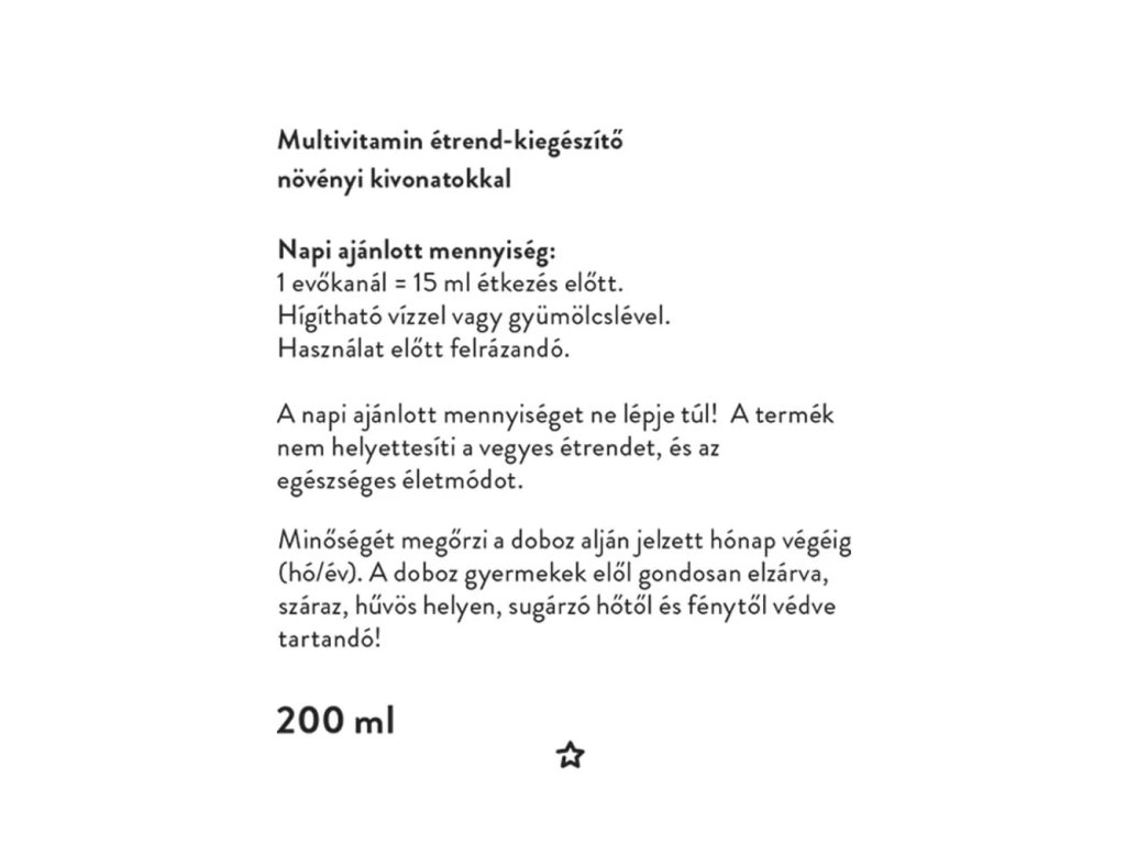 Doporučené denní množství: 1 polévková lžíce = 15 ml před jídlem. Lze ředit vodou nebo ovocnou šťávou. Před použitím protřepejte.Skladování