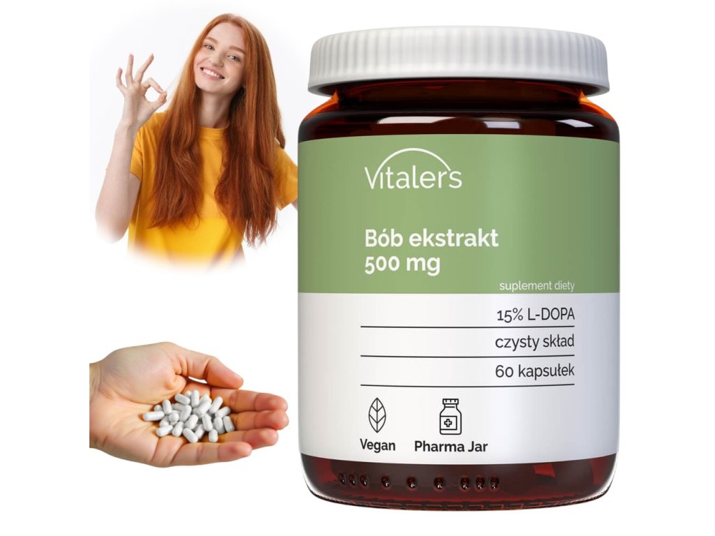 Vitaler's L-DOPA je doplněk stravy ve veganských kapslích obsahující standardizovaný extrakt z bobu (Vicia faba), přirozeně bohatý na L-DOPA – aminokyselinu, která je přímým prekurzorem neurotransmiteru dopaminu. Díky tomu podporuje správnou činnost nervového systému, motivaci, vitalitu a psychickou pohodu.