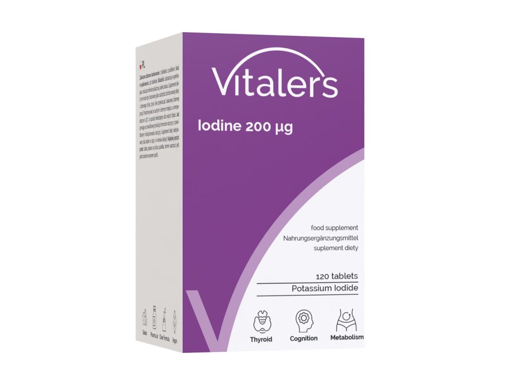 Vitaler's Jód 200 mcg je doplněk stravy v tabletách obsahující jód ve formě jodidu draselného. Jód je nezbytný stopový prvek, který přispívá ke správné tvorbě hormonů štítné žlázy a její normální funkci, podporuje nervový systém i energetický metabolismus.