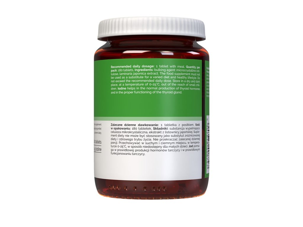 Jedna tableta poskytuje 20 mg kelpu, včetně 200 mcg jódu (133 % RHP). Produkt má čisté vegan složení, bez zbytečných přísad.