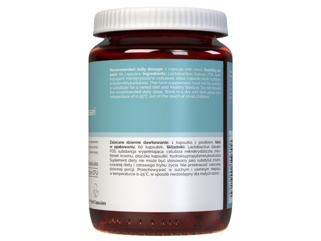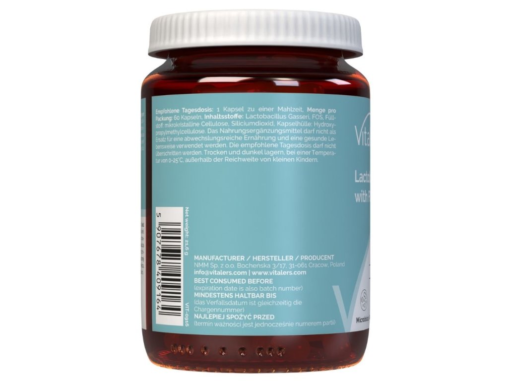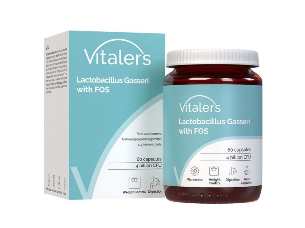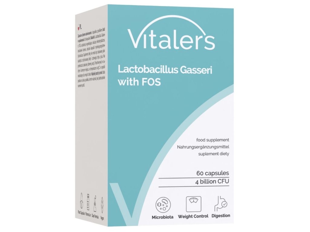 Vitaler's Lactobacillus Gasseri + FOS je vysoce kvalitní doplněk stravy ve formě veganských kapslí. Obsahuje probiotický kmen Lactobacillus Gasseri – jeden z dominantních kmenů mléčných bakterií v lidském tenkém střevě – a prebiotickou vlákninu FOS (fruktooligosacharidy), která podporuje růst přátelských bakterií.