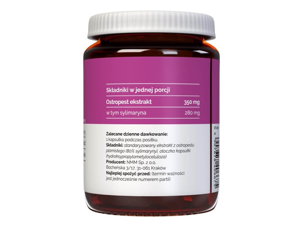 Ostropestřec (Silybum Marianum) je tradiční bylina bohatá na flavonolignany – silymarin, dále kvercetin, apigenin či triterpeny. Silymarin působí jako silný antioxidant, chrání játra před volnými radikály a podporuje jejich přirozenou regeneraci. Produkt obsahuje 350 mg extraktu v jedné kapsli, z toho 280 mg silymarinu (80 %).
