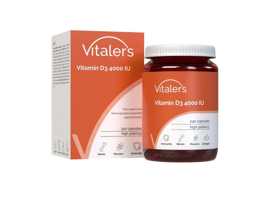 ☀️ Vitaler's Vitamin D3 4000 IU je kvalitní doplněk stravy ve formě měkkých gelových kapslí. Obsahuje vitamin D3 získaný z lanolinu, který podporuje imunitní systém 🛡️, správnou činnost svalů 💪 a udržení zdravých kostí a zubů 🦴. Vysoká dávka 4000 IU poskytuje silnou podporu zejména v obdobích nedostatku slunečního záření.
