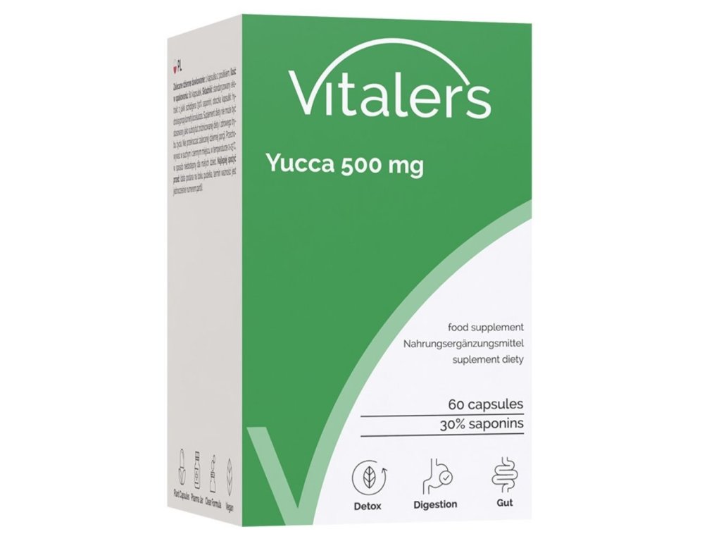 💛 Vitaler's Yucca 500 mg je doplněk stravy ve formě veganských kapslí obsahující vysoce kvalitní extrakt z Yucca schidigera, standardizovaný na 30 % saponinů. Jedna kapsle poskytuje plných 500 mg extraktu, díky čemuž jde o silný a koncentrovaný produkt bez zbytečných plniv či přísad.