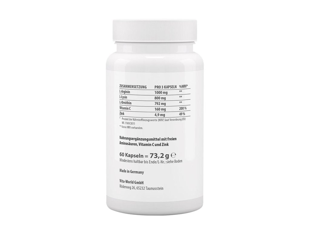 Tři aminokyseliny v jednom produktu plus vitamín C a zinek