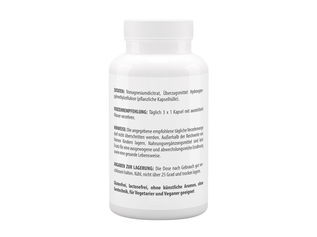 Citrát hořečnatý je forma hořčíku, kterou tělo vstřebává nejlépe a nejrychleji. Podíl čistého hořčíku je proto nižší než podíl ve sloučenině oxid hořečnatý.