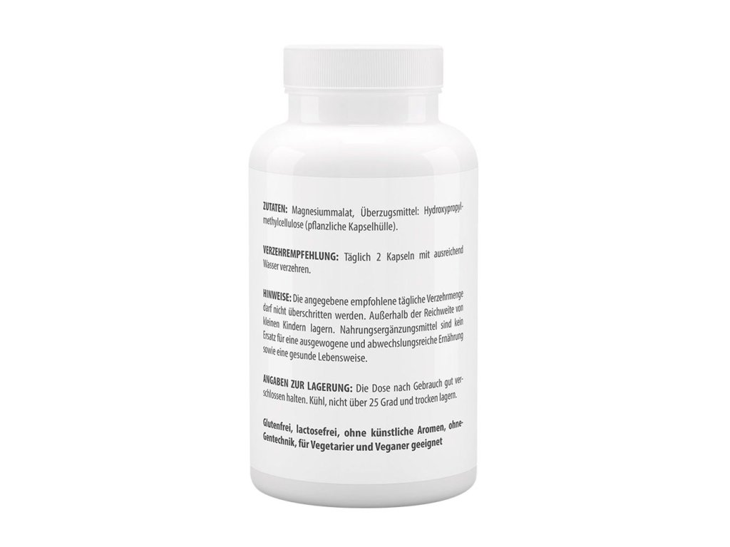 Denní potřeba hořčíku pro dospělé je přibližně 300 až 400 mg a je lehce zvýšená u těhotných a kojících žen. Faktory jako nadměrné pocení při cvičení nebo nedostatečný příjem tekutin mohou také vést ke zvýšené potřebě hořčíku. Hořčík malát je organická sloučenina hořčíku se solemi kyseliny jablečné (malát). Hořčík malát je tělem snadno vstřebáván a dobře snášen. Kyselina jablečná hraje důležitou roli v syntéze ATP, a tedy při tvorbě energie v našich buňkách.