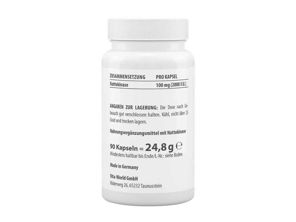 Nattokináza je vyrobena z fermentovaných sójových bobů, které jsou v Japonsku známé jako natto, což je oblíbené japonské jídlo. Nattokináza je podobná tělu vlastnímu plasminu. Používáme gastrorezistentní kapsle k ochraně cenných složek. Každá kapsle obsahuje 2 000 FU.Upozornění
