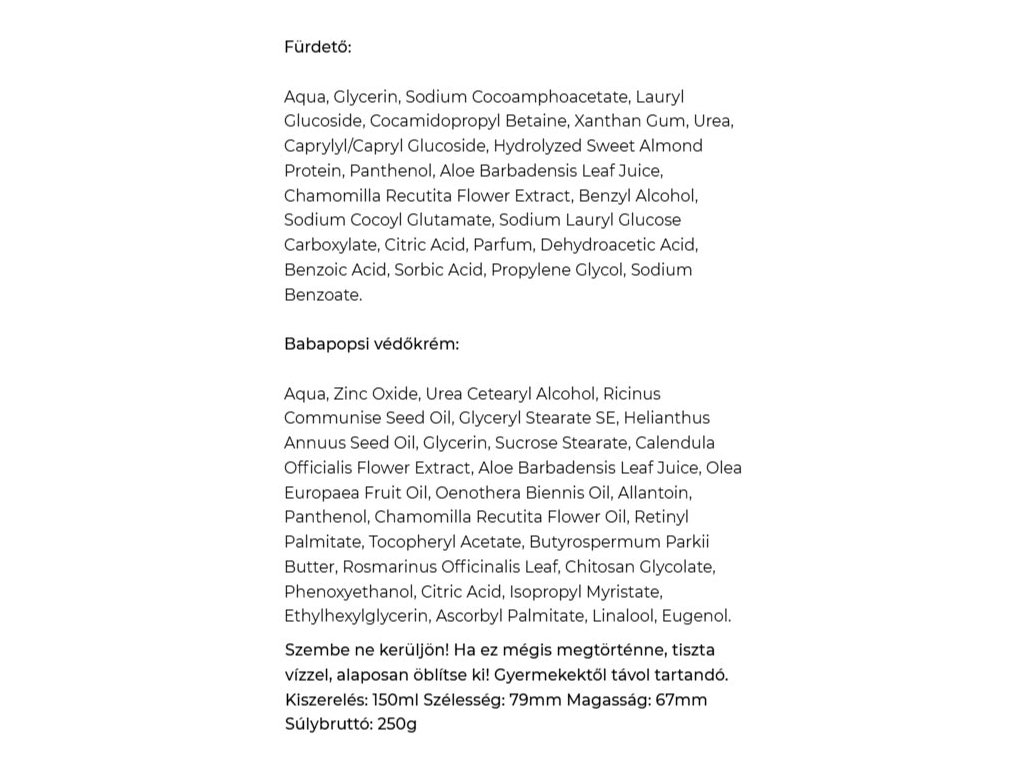 Vymáčkněte trochu balzámu do dlaně a rozetřete jej po pokožce dítěte, poté důkladně opláchněte.Doplňkové parametry