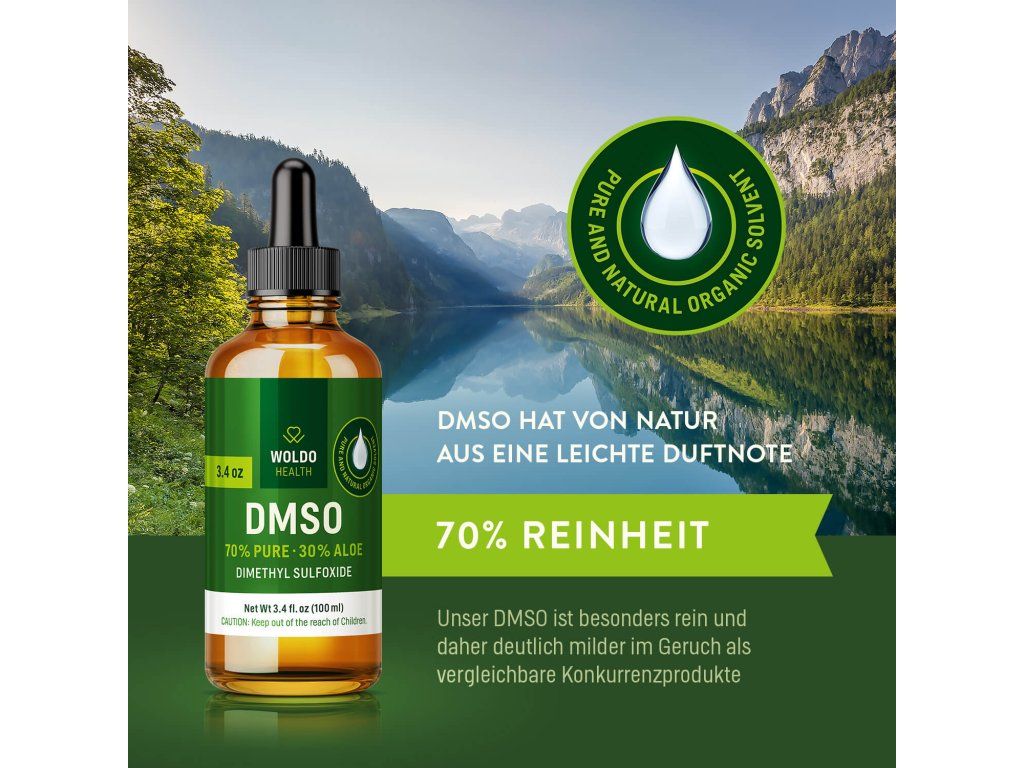 DMSO (dimethylsulfoxid) ve směsi s organickou šťávou z aloe vera v poměru 70:30 je čisté organické rozpouštědlo, které je vyhledáváno pro své výrazné transportní a rozpouštěcí vlastnosti.