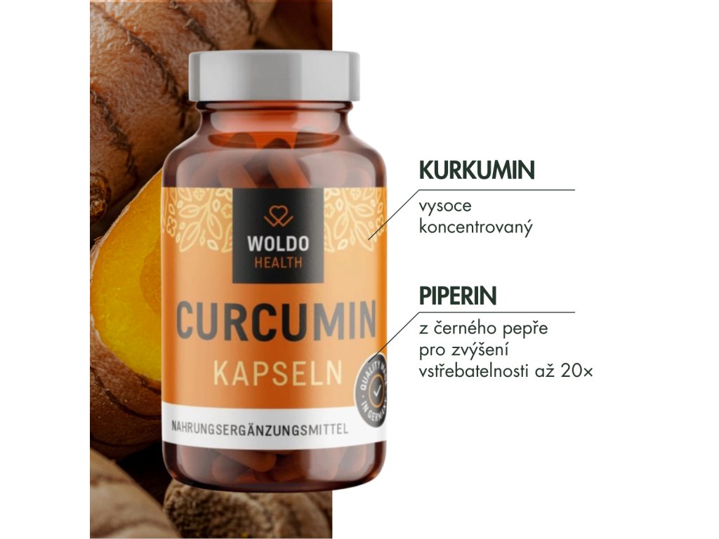 WoldoHealth® Kurkumin s piperinem 120 kapslí