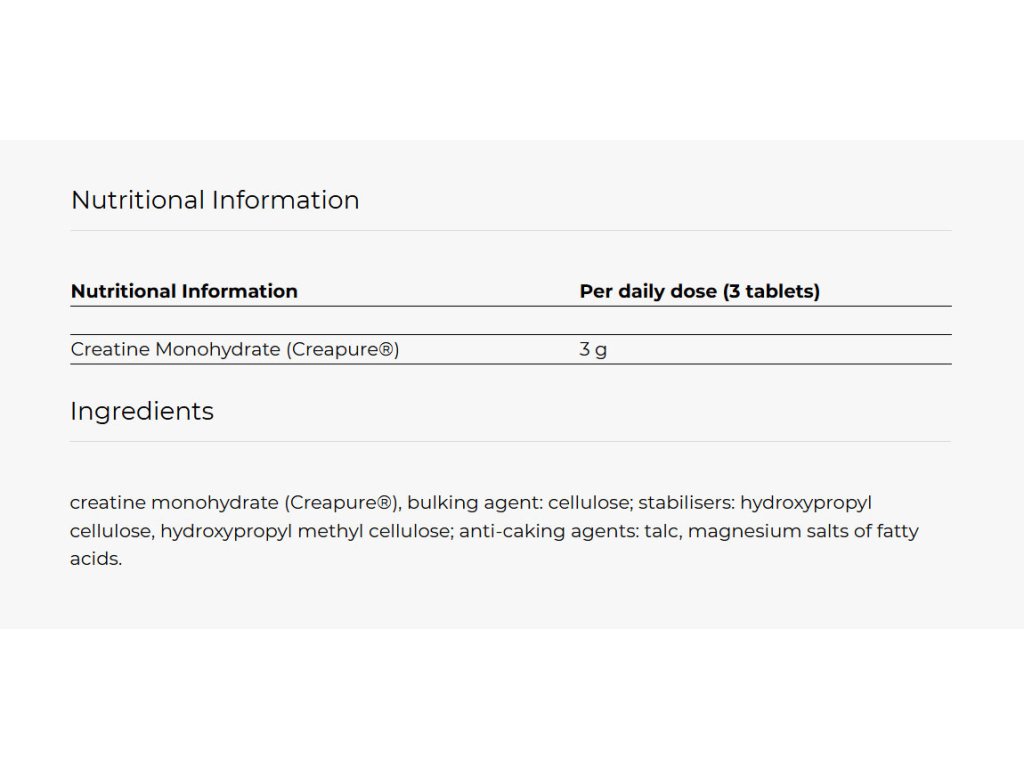 - Obsahuje 1000 mg kreatin monohydrátu v jedné tabletě